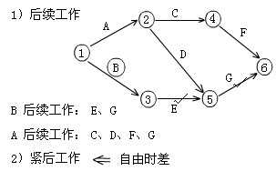 考試要點:(1)雙代號網(wǎng)絡(luò)計劃的編制;(2)雙代號網(wǎng)絡(luò)六個時間參數(shù)(最早開始時間、最早完成時間、最遲開始時間、最遲完成時間、總時差和自由時差)的計算(節(jié)點計算法、工作計算法、表格計算法);(3)工期(計算工期、要求工期、計劃工期);(4)邏輯關(guān)系的分析;(5)雙代號網(wǎng)絡(luò)計劃轉(zhuǎn)換為雙代號時標網(wǎng)絡(luò)計劃;(6)工期優(yōu)化;(7)網(wǎng)絡(luò)計劃的應(yīng)用。