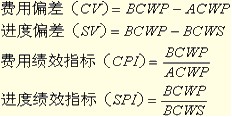 費用績效指數(shù)(CPI)(相對)=BCWP/ACWP;進度績效指數(shù)(SPI)(相對)=BCWP/BCWS