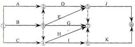 答案解析:本題考查的是雙代號(hào)網(wǎng)絡(luò)圖的繪圖規(guī)則。有⑦⑧兩個(gè)終點(diǎn)節(jié)點(diǎn)。虛工作③②箭頭的節(jié)點(diǎn)編號(hào)數(shù)字小于箭尾節(jié)點(diǎn)編號(hào)的數(shù)字。參見(jiàn)教材P214、215。