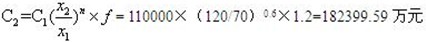 7、已知建設(shè)某生產(chǎn)70萬噸化工裝置的投資額為110000萬元,現(xiàn)擬建生產(chǎn)120萬噸的同類裝置,工程條件與上述裝置類似。生產(chǎn)能力指數(shù)為0.6,價格調(diào)整為1.2,則擬建裝置的投資額估算為( )萬元。