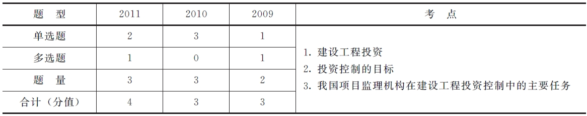 在歷年考試中,第一章所占分值較小。考試重點(diǎn)集中在建設(shè)工程總投資、靜態(tài)投資與動態(tài)投資的組成,這部分內(nèi)容每年必考;投資控制的重點(diǎn)及我國項目監(jiān)理機(jī)構(gòu)在工程建設(shè)各階段投資控制的主要任務(wù)也是??嫉膬?nèi)容。此外,還要注意投資控制中措施方面的內(nèi)容。