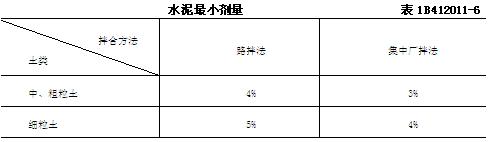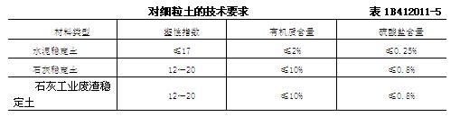 5. 無機結(jié)合料穩(wěn)定細粒土時,細粒土應(yīng)符合表1B412011-5的要求。