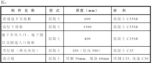 3.2.4 主要結(jié)構(gòu)材料選用表(見表3-2)