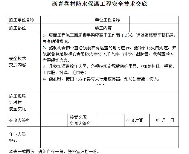 詳情請下載附件瀝青卷材防水保溫工程安全技術交底