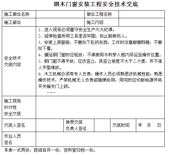 詳情請下載附件鋼木門窗安裝工程安全技術交底