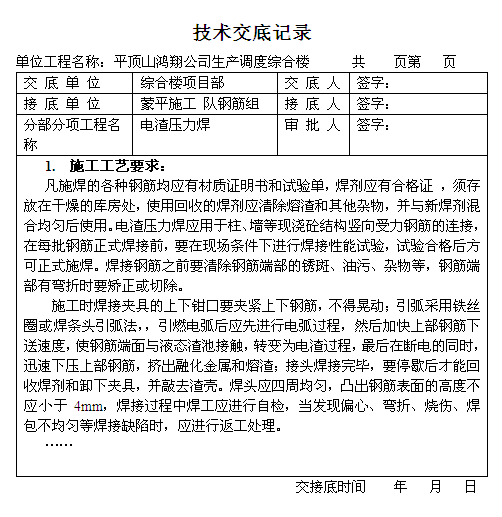詳情請(qǐng)下載附件電渣壓力焊技術(shù)交底