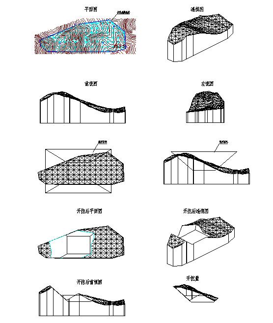 采用三維實(shí)體技術(shù)由于在應(yīng)用過程中要使用大量布爾運(yùn)算,對機(jī)器的性能要求高,難于對大范圍地形生成實(shí)體。對開挖體的制作由于AutCAD軟件本身的局限難于通過編程手段生成復(fù)雜開挖體。開挖過程往往與地質(zhì)情況有關(guān),如何將地質(zhì)信息放入地面模型中達(dá)到分層開挖的計(jì)算還要做進(jìn)一步探討。