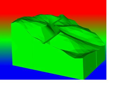 1.1構(gòu)建三維實(shí)體地形通過在地形圖上構(gòu)建三角網(wǎng)方式構(gòu)建三維實(shí)體地形,程序可以在任意封閉區(qū)域內(nèi)直接生成三維實(shí)體地形,對于大的區(qū)域,為了避免在布爾運(yùn)算時造成內(nèi)存不足,也可以先生成面模型,再分塊生成體模型。