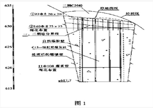 6)回填灌漿是補強。根據(jù)5個月的現(xiàn)場觀測,回填灌漿的12榀拱架與混凝土邊成一體,強度明顯提高,沒有出現(xiàn)滲水現(xiàn)象。對后期下底開挖與澆筑混凝土奠定了堅實的基礎。