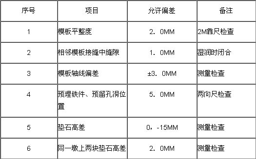 2.模板支撐尺寸誤差±3.0MM,模板中心誤差±10MM,截面尺寸準(zhǔn)確無(wú)誤。