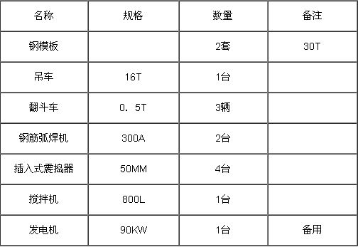 。4)運(yùn)輸設(shè)備、拌合機(jī)具、起重設(shè)備、振搗設(shè)備準(zhǔn)備齊全。