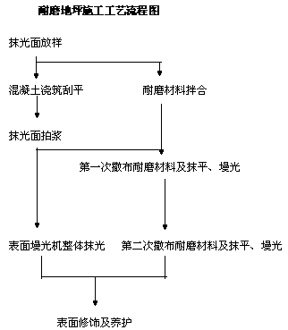 三、施工組織以500m2/d為準(zhǔn),除澆倒地面混凝土常規(guī)配備的人員外,還需配備以下施工人員:混凝土整平3人,耐磨材料運(yùn)輸2人,耐磨材料撒布3人,墁光機(jī)施工3人,鏝刀修平3人。依以上標(biāo)準(zhǔn), 連續(xù)不間斷施工,6~7臺抹光機(jī)及配備相應(yīng)的人員,可完成2000m2/d .