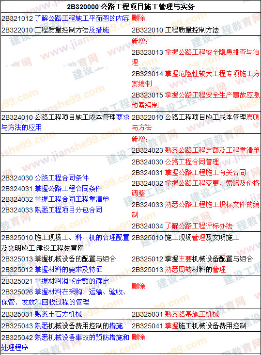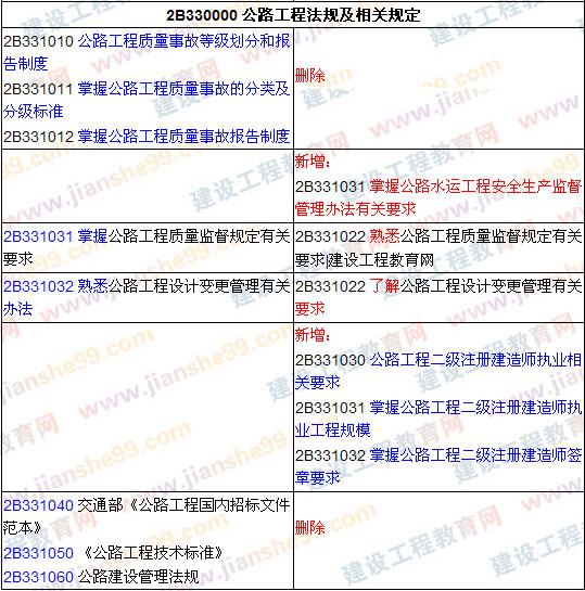 為了方便廣大學(xué)員對(duì)2009年二級(jí)建造師考試的備考,建設(shè)工程教育網(wǎng)特對(duì)二級(jí)建造師考試大綱的變動(dòng)和調(diào)整進(jìn)行了整理具體變化如下: