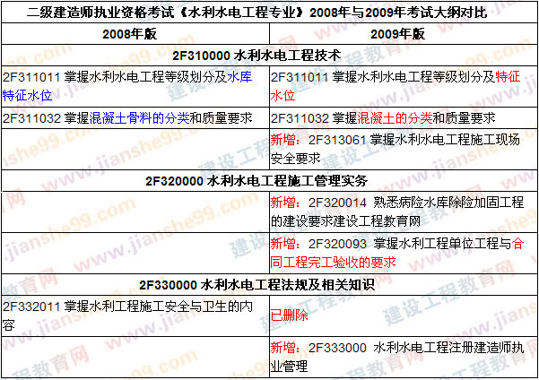 2009年二級建造師新版教材和大綱已于3月5日由建工社統(tǒng)一發(fā)往各地書店,在之前的建工社發(fā)布的內(nèi)容變化信息里,提到的內(nèi)容變化在10%左右,但是當(dāng)建設(shè)工程教育網(wǎng)的老師拿到教材和大綱之后,發(fā)現(xiàn)實際調(diào)整變動比較大,為了能讓廣大考生對09年二級建造師考試內(nèi)容變動情況有一個全面的了解及認(rèn)識,建設(shè)工程教育網(wǎng)教務(wù)人員及時作出相關(guān)變動說明,望廣大學(xué)員及時參考并做好2009年學(xué)習(xí)準(zhǔn)備。建設(shè)工程教育網(wǎng)原創(chuàng)