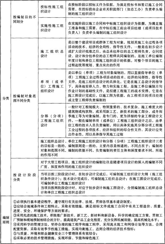 施工組織設(shè)計概述知識點續(xù)表: