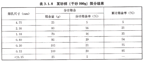 某砂樣篩分結(jié)果列于表3.1.8中,試評(píng)定該砂的粗細(xì)程度和顆粒級(jí)配。