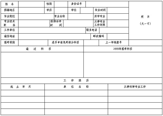 2009年度注冊(cè)安全工程師執(zhí)業(yè)資格考試報(bào)名發(fā)證登記表