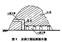 某山體有一、二兩層坑道式人防工程(見圖1),高差38米,由一條豎井(未被復(fù)毛洞)連接,二層工事(200米長未被復(fù)毛洞)平時閑置,一層平時使用,總使用面積約6000平方米。該工事原分別設(shè)有三套機(jī)械通風(fēng)降濕系統(tǒng),共有LCT-25調(diào)溫降濕機(jī)8臺、GS-20降濕機(jī)4臺,配用電機(jī)總功率148KW,除去送排風(fēng)機(jī)和照明設(shè)備等用電量不計(jì),僅降濕機(jī)用電(按每天運(yùn)行8小時計(jì)算),日耗電量就達(dá)1184度,月運(yùn)行費(fèi)用約17000元(年平均電價0.48元/度),用戶難以承受,常常甚至營業(yè)時都不開通風(fēng)降濕設(shè)備,致使工程內(nèi)電器、金屬管道、風(fēng)機(jī)和降濕機(jī)等設(shè)備銹蝕嚴(yán)重,甚至影響到人防專用防護(hù)密閉門、防爆波閥門等防護(hù)設(shè)備的正常啟閉,削弱了人防工程的防護(hù)功能,平戰(zhàn)結(jié)合效益不佳。