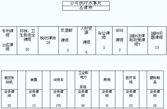 我們以美國(guó)通用電器公司的法律事務(wù)機(jī)構(gòu)為例,就可看出公司運(yùn)作與法律的緊密結(jié)合性。
