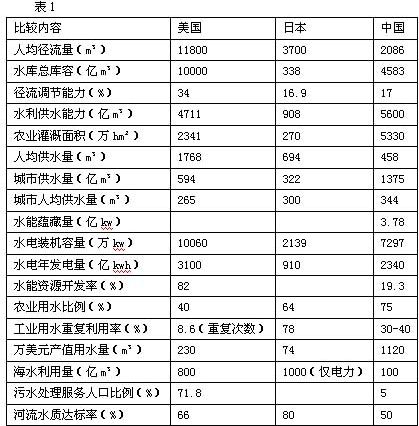 為了解我國水利建設發(fā)展的水平,我們選擇一些重要指標與發(fā)達國家進行比較(表1),我們可以得到以下一些認識: