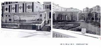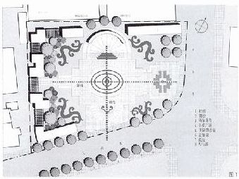 廣場周圍的建筑形式影響著廣場的風格面貌。廣場的北立面為歐式風格,其雄偉挺拔的歐式古典造型建筑成為本地區(qū)的地標性景觀。廣場東、南面為城市干道,空間開闊。廣場設(shè)計既要以建筑語言建立對話關(guān)系,又要與空間環(huán)境相互融合,真正發(fā)揮廣場對美化城市景觀,改善城市面貌的作用。(如圖2)