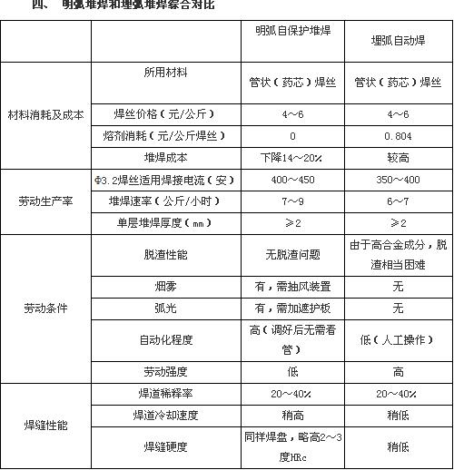 四、明弧堆焊和埋弧堆焊綜合對(duì)比