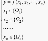 式中,y為施工總平面系統(tǒng);f(x1,x2,…,xn)為描述系統(tǒng)中要素之間相互關(guān)系的函數(shù);Ω1,Ω2,…,Ωn為要素x1,x2,…,xn的取值域,可以看作各個(gè)要素的強(qiáng)制性約束條件,包括要素功能必須滿(mǎn)足的使用要求和強(qiáng)制性規(guī)定等。根據(jù)價(jià)值工程原理,大型建設(shè)工程施工總平面設(shè)計(jì)的問(wèn)題轉(zhuǎn)化為建立并求解施工總平面系統(tǒng)價(jià)值方程,并根據(jù)結(jié)果選擇最優(yōu)設(shè)計(jì)方案的問(wèn)題,如下式所示: