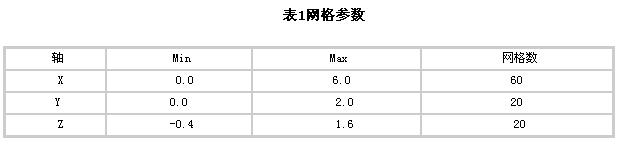 1.根據(jù)實(shí)物,建立模型長(zhǎng)×寬×高=6m×2m×2m,取網(wǎng)格參數(shù)見(jiàn)表1。