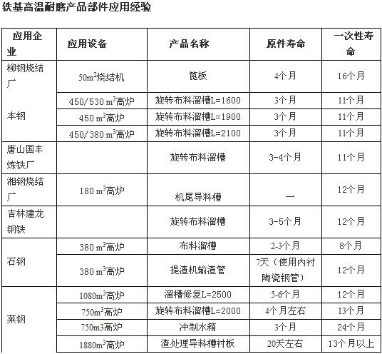 b、一次性壽命是指我公司鐵基高溫耐磨產(chǎn)品部件等的不修復(fù)使用壽命。