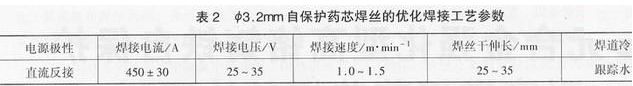 由于自保護藥芯焊絲的工藝參數(shù)適應(yīng)性小,所以試驗中對其進行了優(yōu)化,如表2所示。