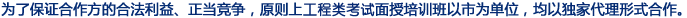 雙方確定合作意向,達(dá)成市場(chǎng)理解和服務(wù)理念一致,合作伙伴提供審批材料;待初審?fù)ㄟ^,簽訂合作協(xié)議,然后由網(wǎng)校派專人提供業(yè)務(wù)培訓(xùn)指導(dǎo),對(duì)首年合作考核合格的合作伙伴正式授予建設(shè)工程教育網(wǎng)**地區(qū)培訓(xùn)中心銅牌。