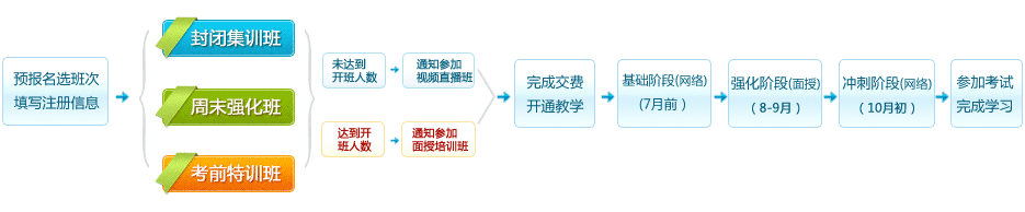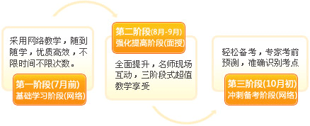 | 面授教學(xué) | 封閉集訓(xùn),小班授課 | 面授講座,精品教學(xué) | 面授串講,預(yù)測(cè)方向 | ||||