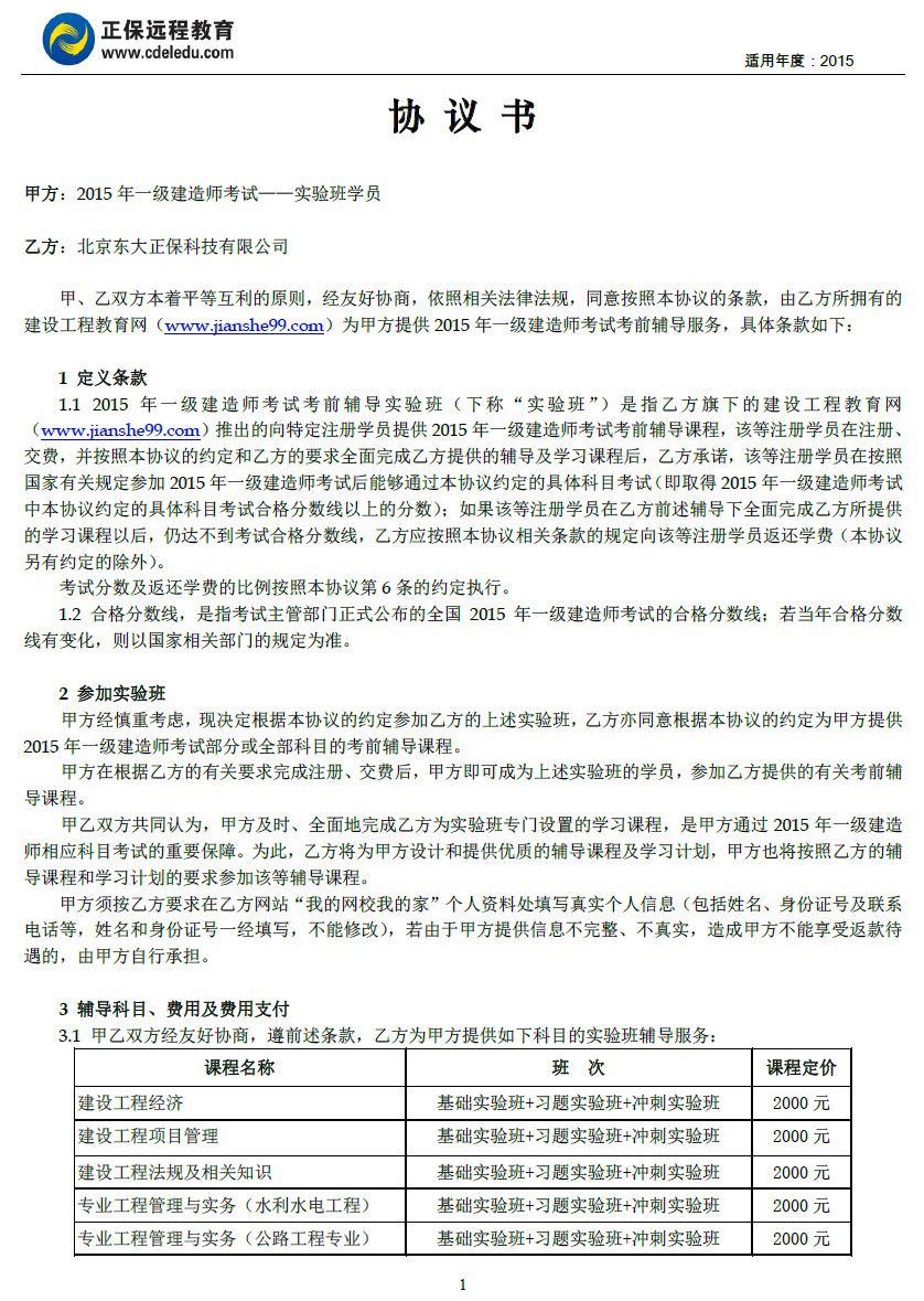 一級(jí)建造師“實(shí)驗(yàn)班”協(xié)議書