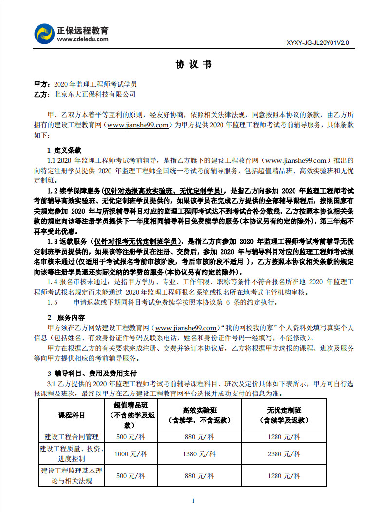 2020年監(jiān)理工程師協(xié)議書