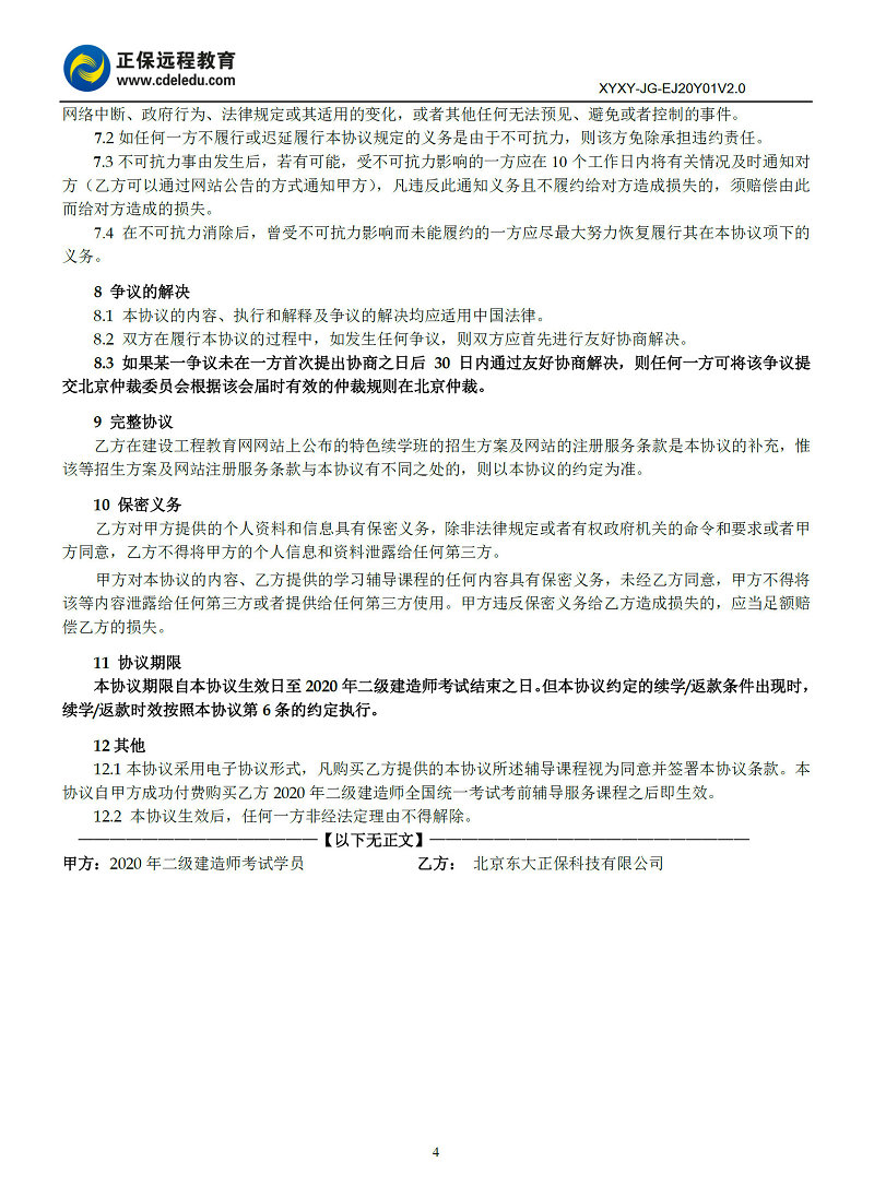 2020年二級(jí)建造師協(xié)議書