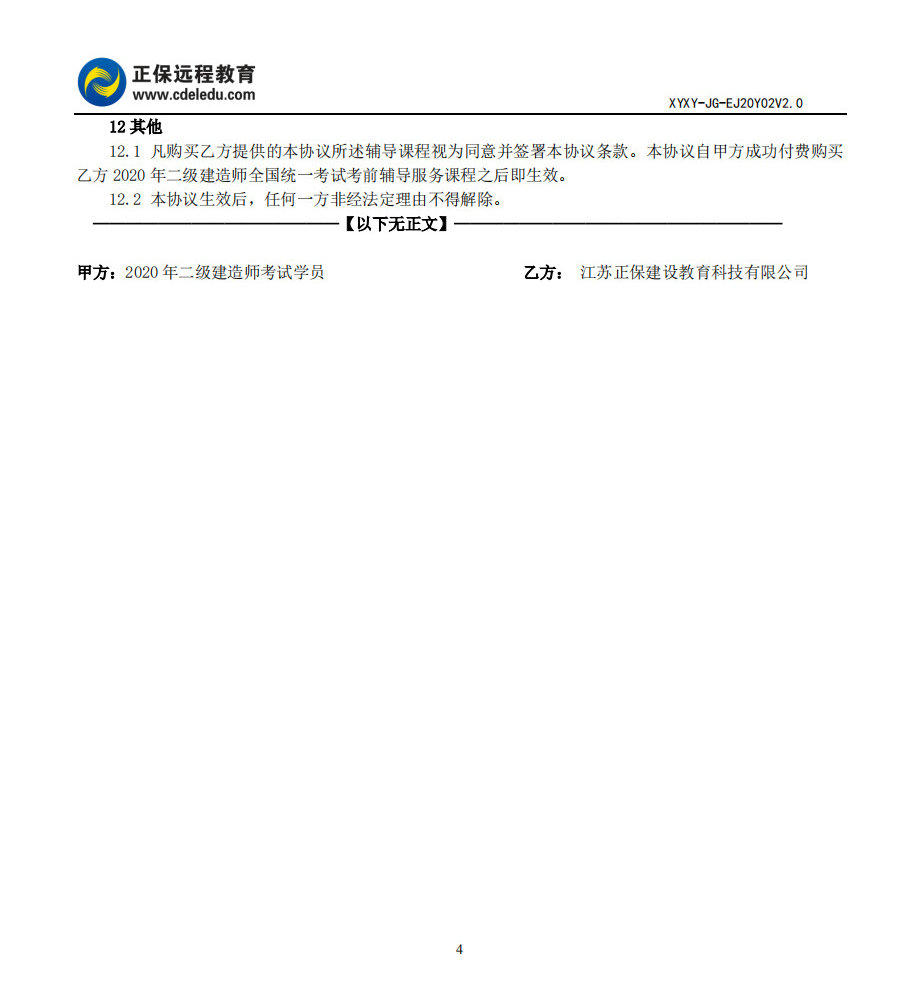 2020年二級建造師高效實(shí)驗班協(xié)議書