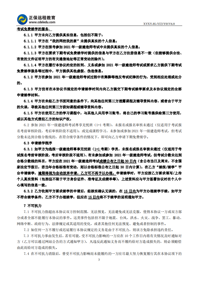 2021年一級建造師尊享無憂班續(xù)學(xué)協(xié)議書