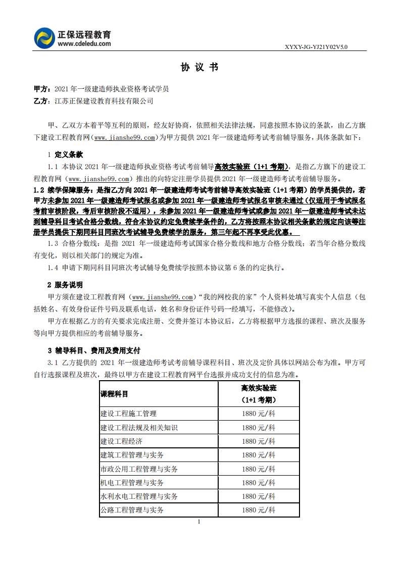 2021年一級(jí)建造師高效實(shí)驗(yàn)班續(xù)學(xué)協(xié)議書