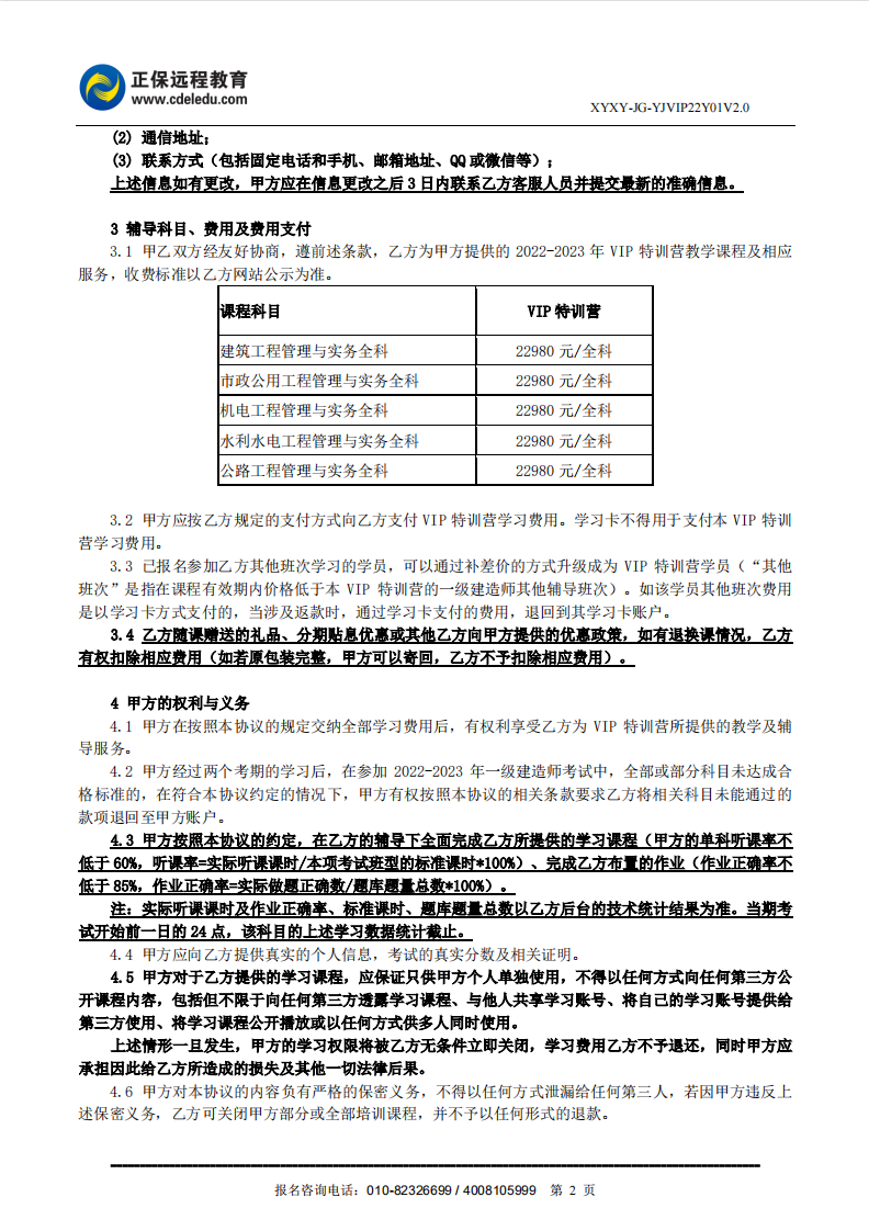 2022年一級建造師VIP特訓(xùn)營(全科)協(xié)議書
