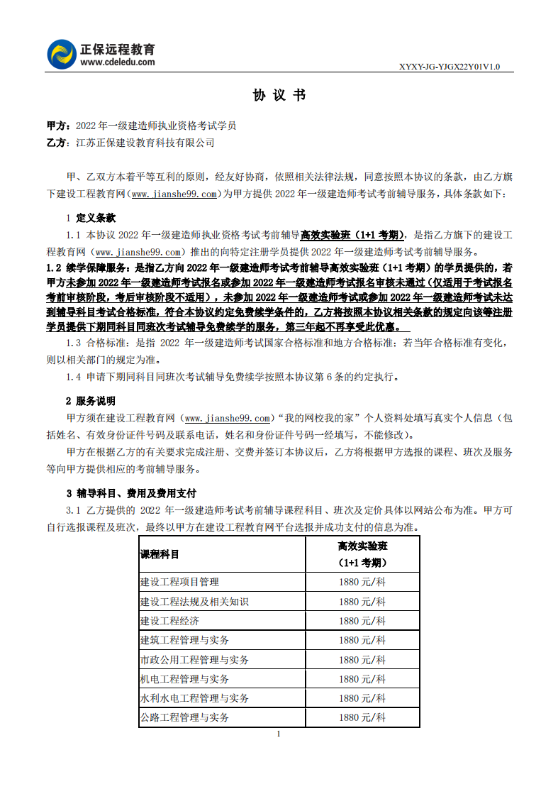 2022年一級(jí)建造師高效實(shí)驗(yàn)班續(xù)學(xué)協(xié)議書