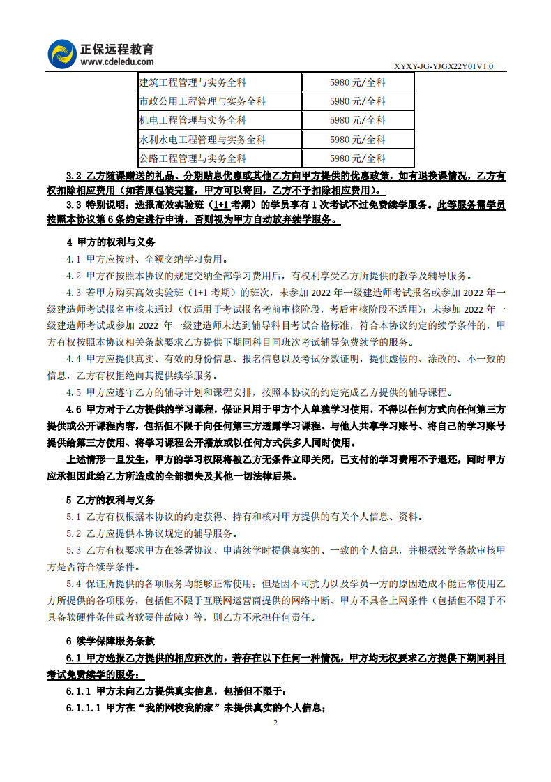 2022年一級(jí)建造師高效實(shí)驗(yàn)班續(xù)學(xué)協(xié)議書(shū)