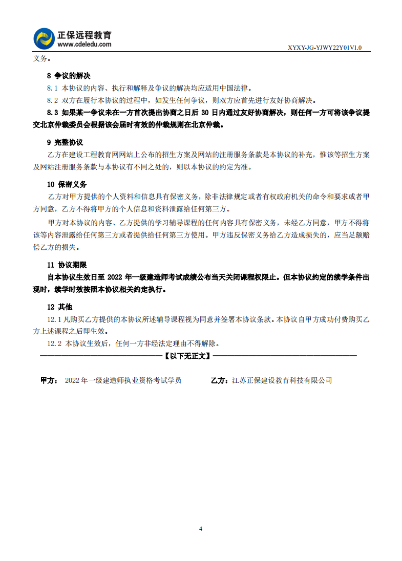2022年一級建造師尊享無憂班續(xù)學(xué)協(xié)議書