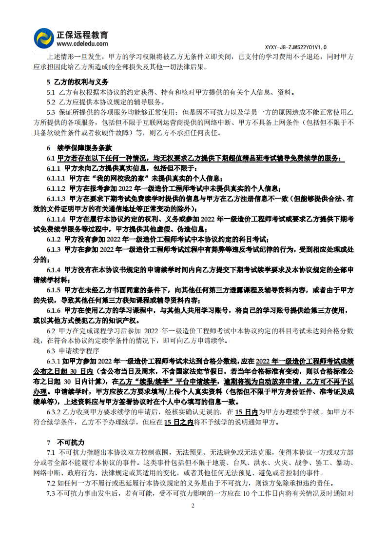 一級造價師面授特招班協(xié)議書