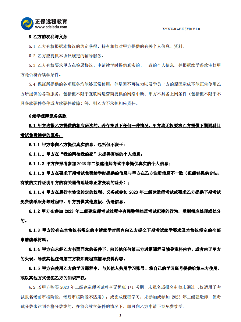 2023年二級建造師尊享無憂班1+1考期協(xié)議書