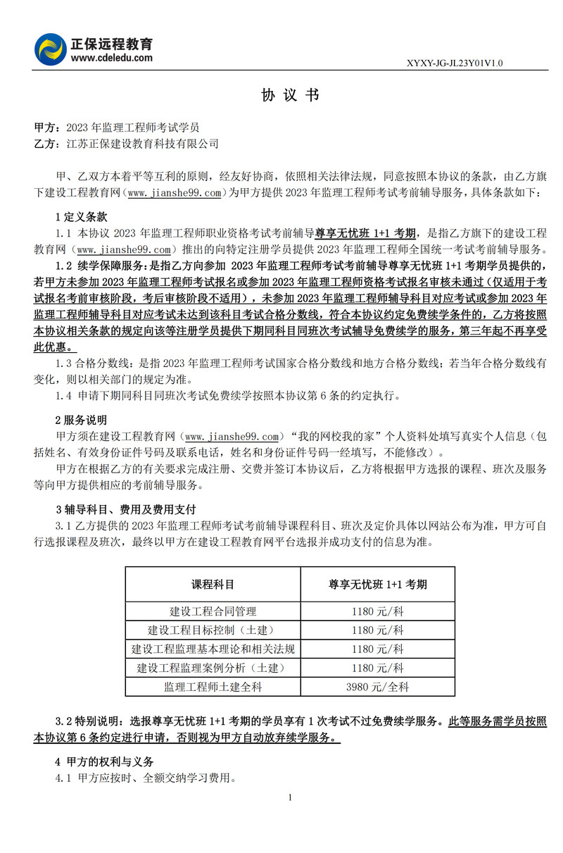 2023年監(jiān)理工程師協(xié)議書