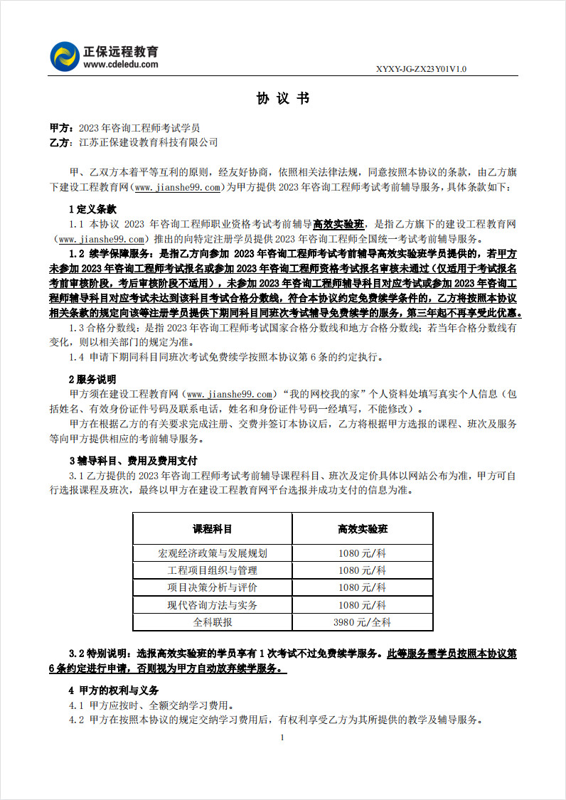 咨詢工程師高效實(shí)驗(yàn)班協(xié)議書(shū)