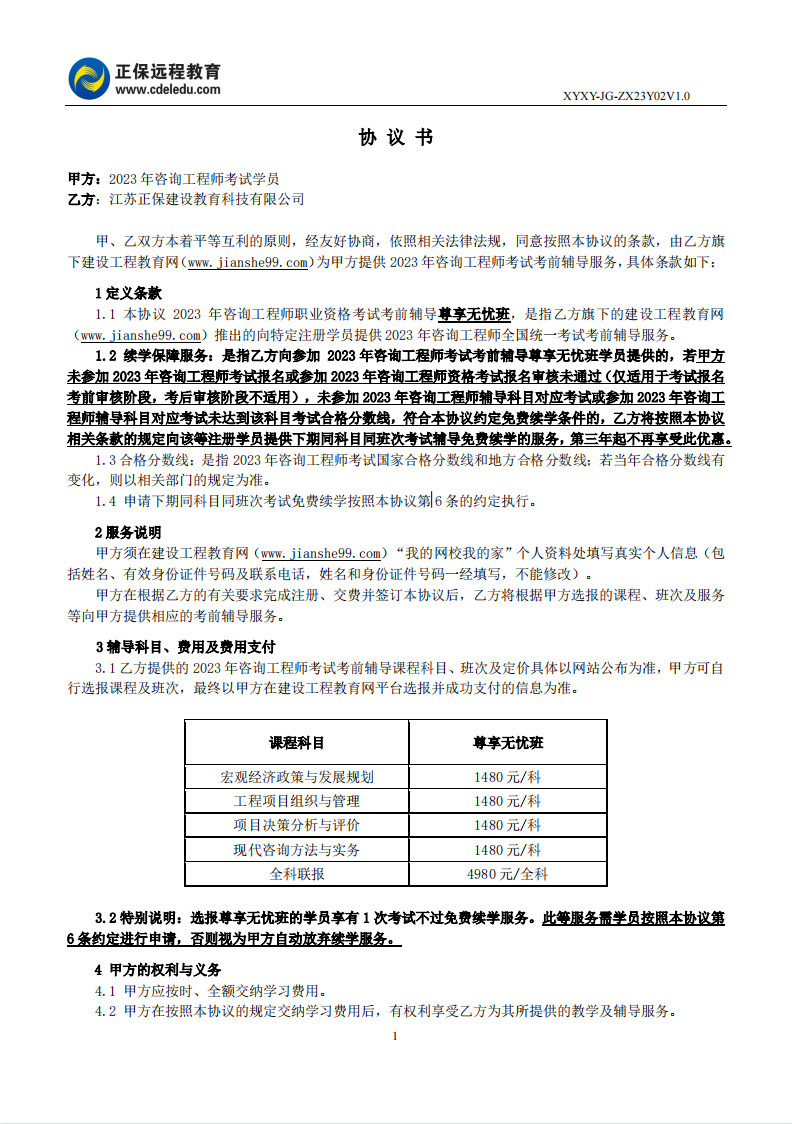 咨詢(xún)工程師尊享無(wú)憂(yōu)班協(xié)議書(shū)
