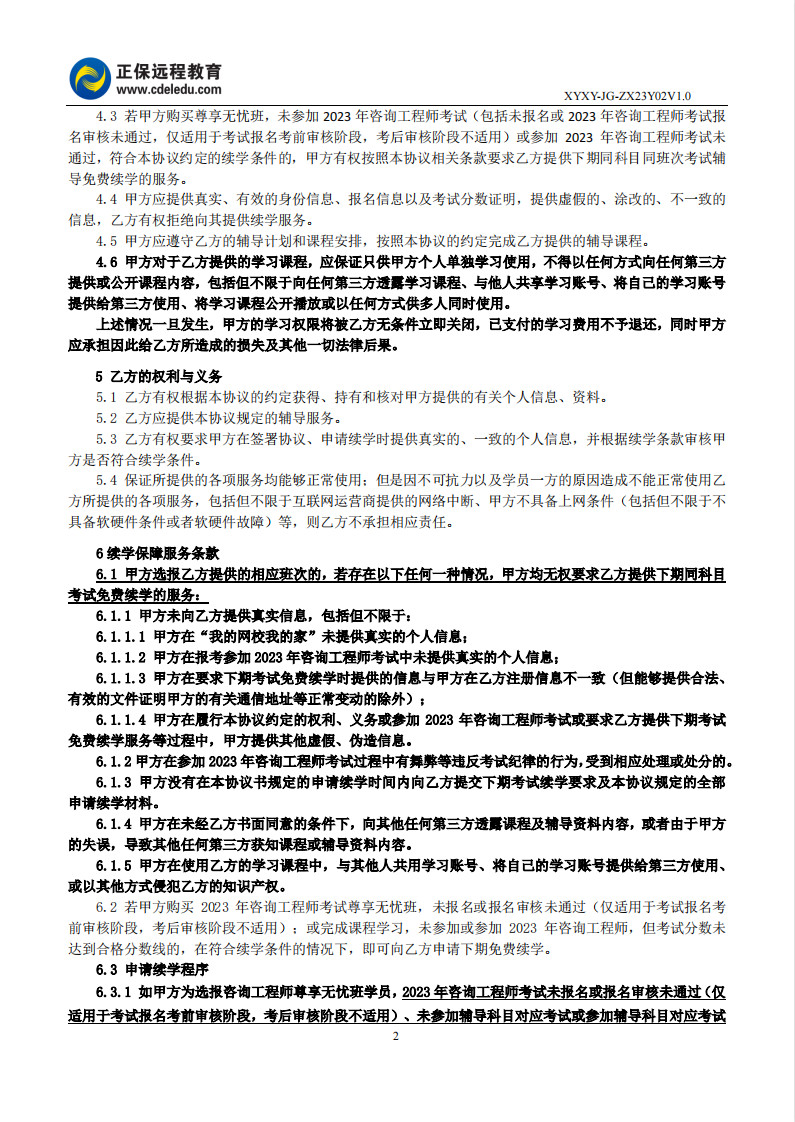 咨詢工程師尊享無憂班協(xié)議書