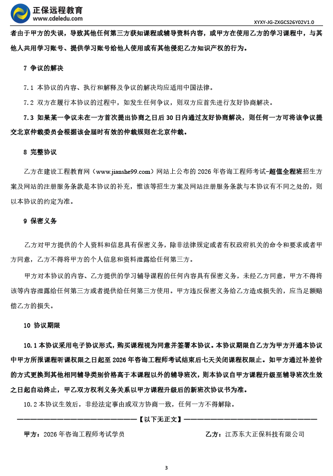 咨詢工程師超值全程班協(xié)議書