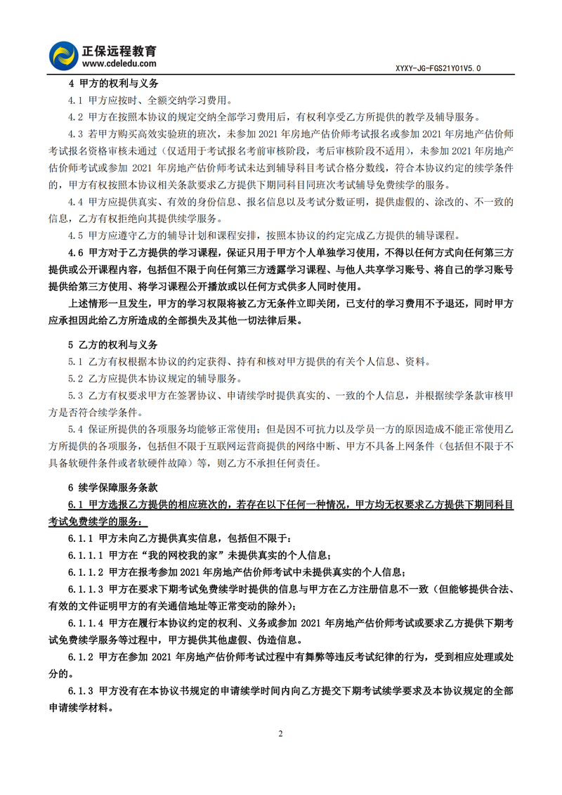 2021年房地產(chǎn)估價師高效實驗班協(xié)議書